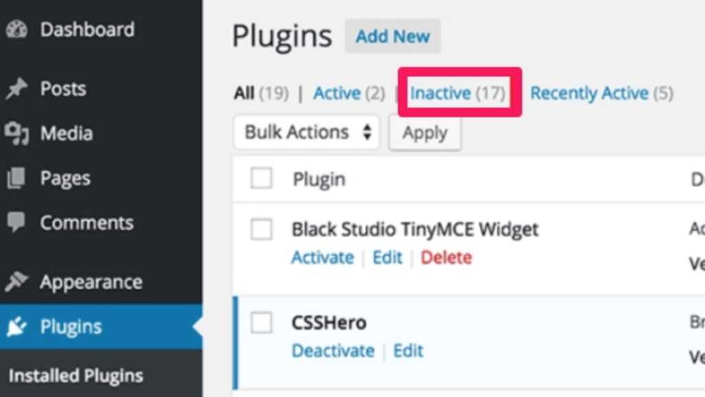 - Take Inactive Plugins Off of Your Site