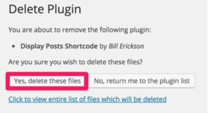 Press “Deactivate” and “Delete” to remove a plugin and all of its files completely.
