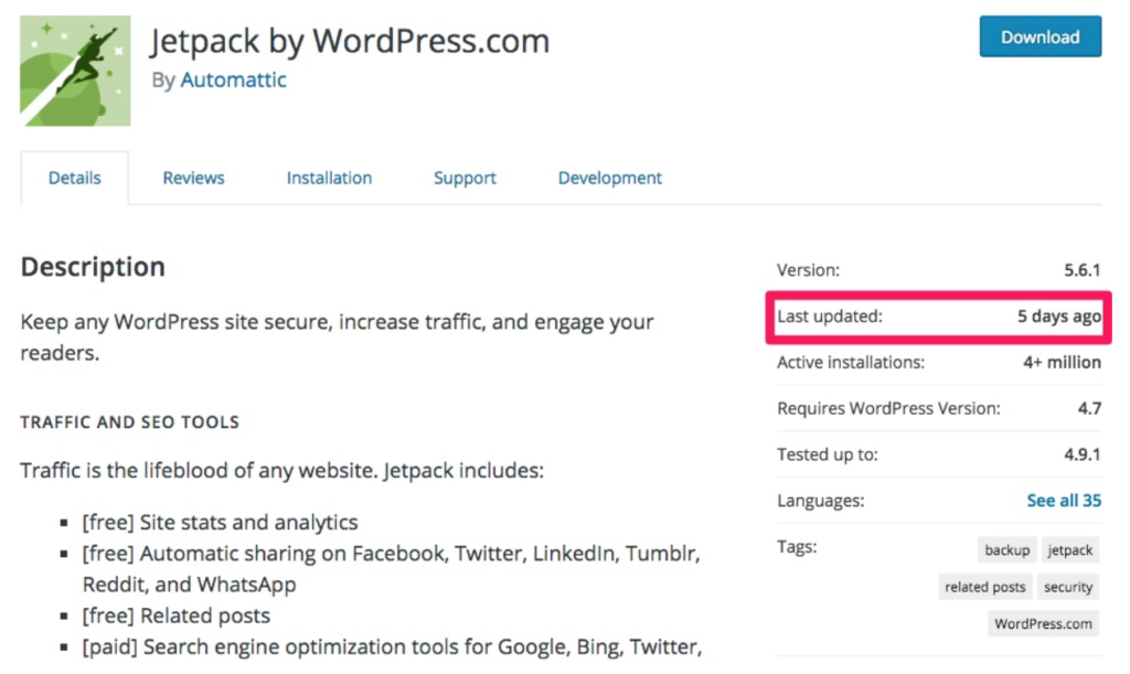 You should also check out the total number of downloads and reviews that a plugin has. Over 100,000 downloads and at least four stars is a good rule of thumb.