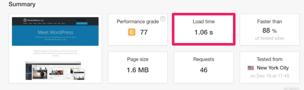 The test your site, use a tool like Pingdom. Run a full page test to analyze your website’s performance and page speeds.