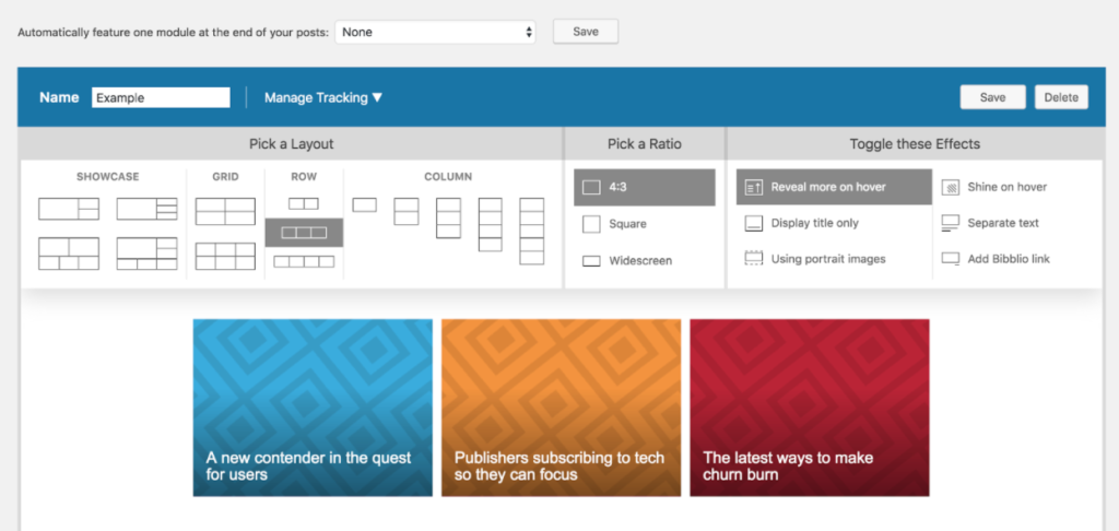 - Flexible layout options for displaying your posts. You can even create a vertical layout to display in your sidebar via a widget