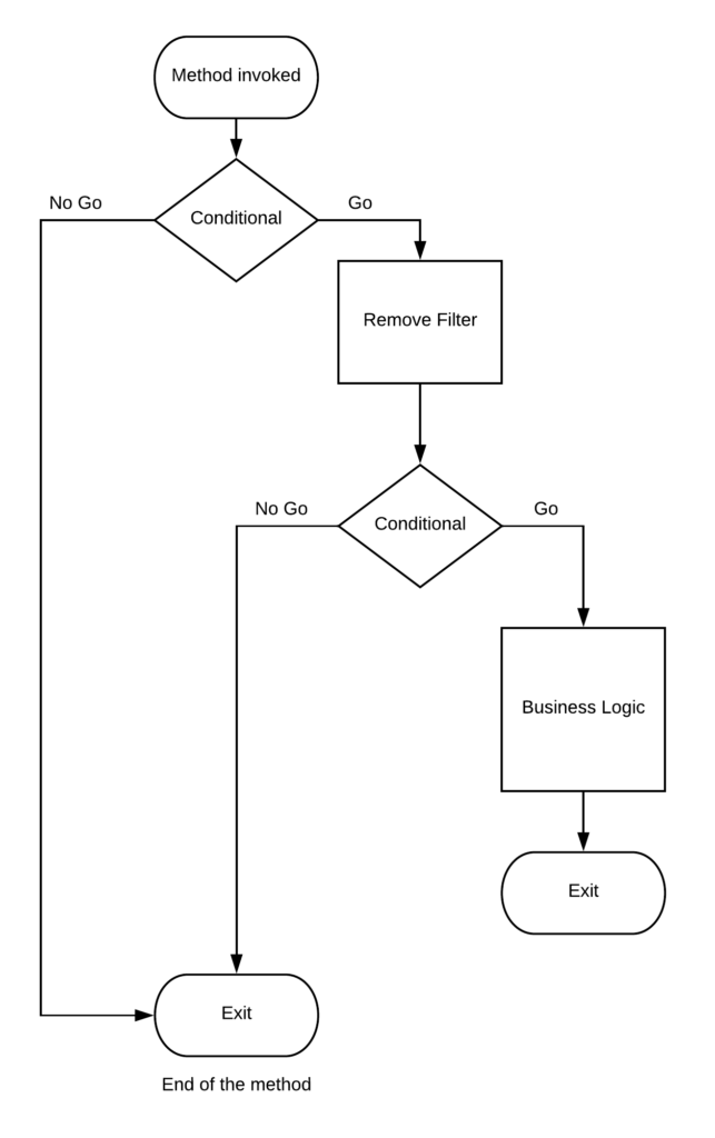 The effect of this flawed design is the “no go” exit point shifts from where the conditional finds it to the end of the method.