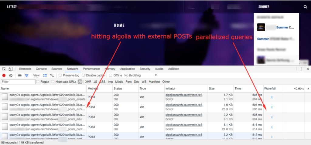 Notice the search took 7.43 seconds using the default WordPress search. However, after implementing Algolia search the results were nearly instant: