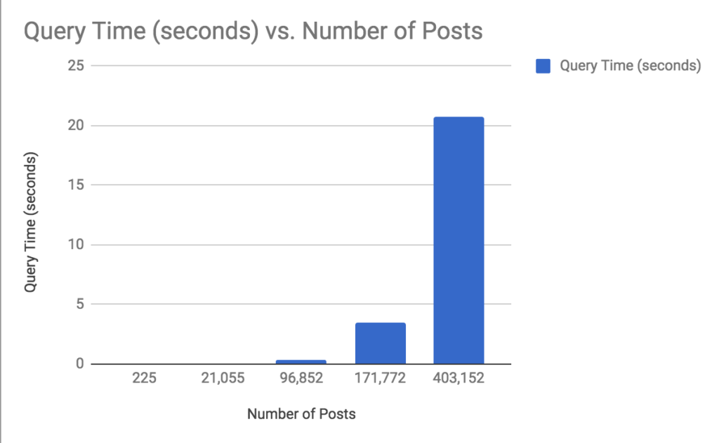 On sites with a very large number of posts, the query took over 20 seconds! This is not a scalable search option for sites with high traffic.