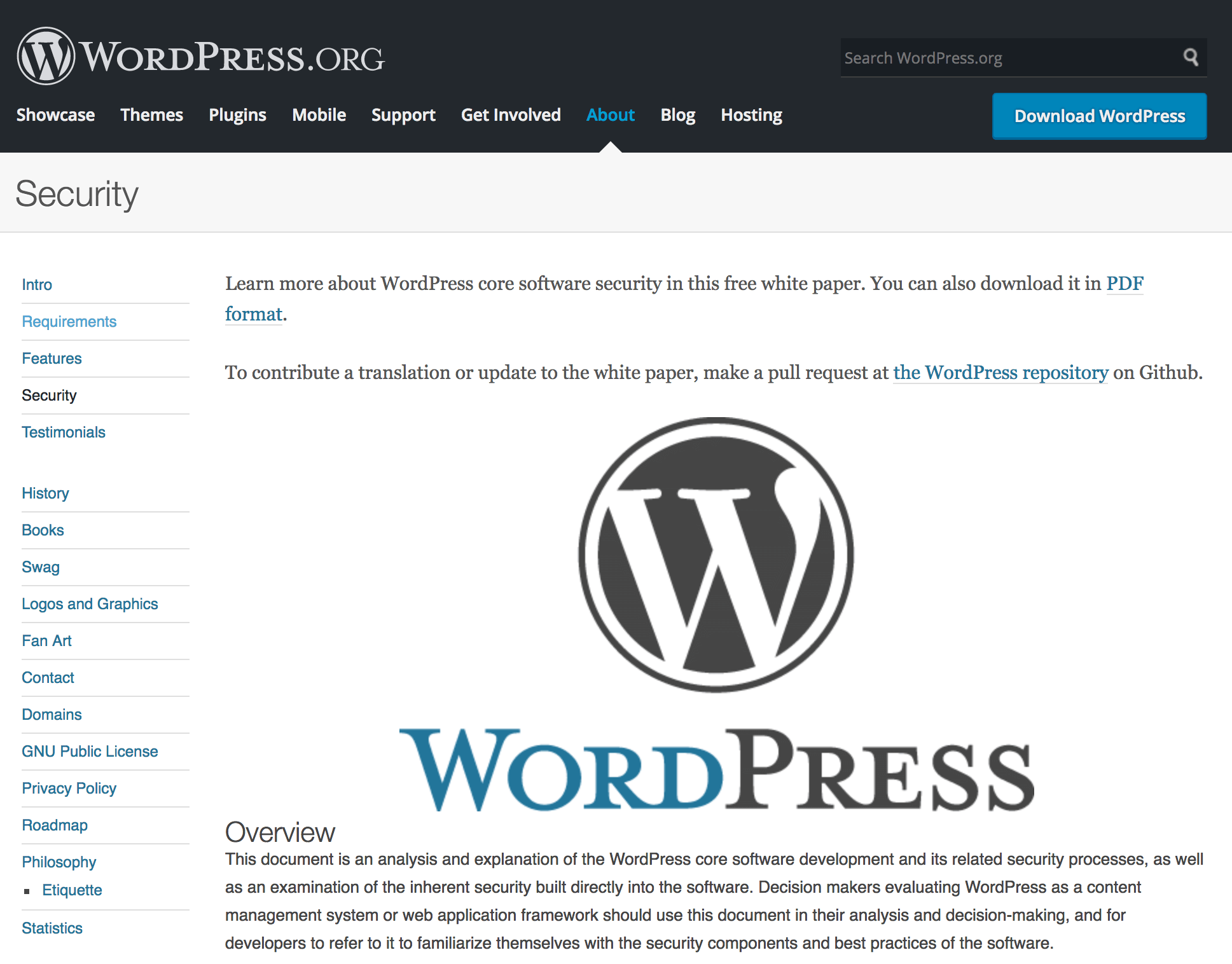 On their security page, the WordPress team clearly outlines their commitment to closing off potential hacker entry points. This includes: