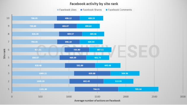 The number of shares and Likes a blog post receives greatly increase the chances of getting higher rankings. According to a study on 23 million shares, the top 4 ranking posts on Google are the ones with the most social activity, especially on Facebook.