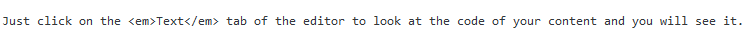 Just click on the Text tab of the editor to look at the code of your content and you will see it.