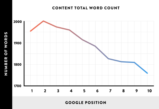 This view is supported by various studies, including one from Brian Dean at Backlinko where they found that the average word count of results on Google’s front page is 1,890 words.