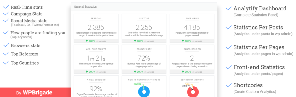 Analytify emphasizes ease of use starting with their one-click authorization process. The plugin has both a Free and Pro version.