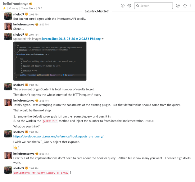 One thing about the example code we’re working with is that it started fairly contrived, it’s example code after all. But, we’re slowly making it actually useful, because that is more fun. As a result, the interface that Tonya defined for objects that would act as our “content getter” — the system that actually got content from the database or API, didn’t ask the right questions of the outside world.