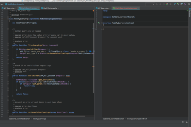 To be honest, this is where I struggle often. I’ll have two or three systems that work in isolation and then will have trouble putting them together. Adding new interfaces for ModifySchema which changes the endpoint’s schema and ModifyQueryArgs which changes the allowed WP_Query args was my first step to gluing everything together. Starting there allowed me to define the shape of how they would connect later.