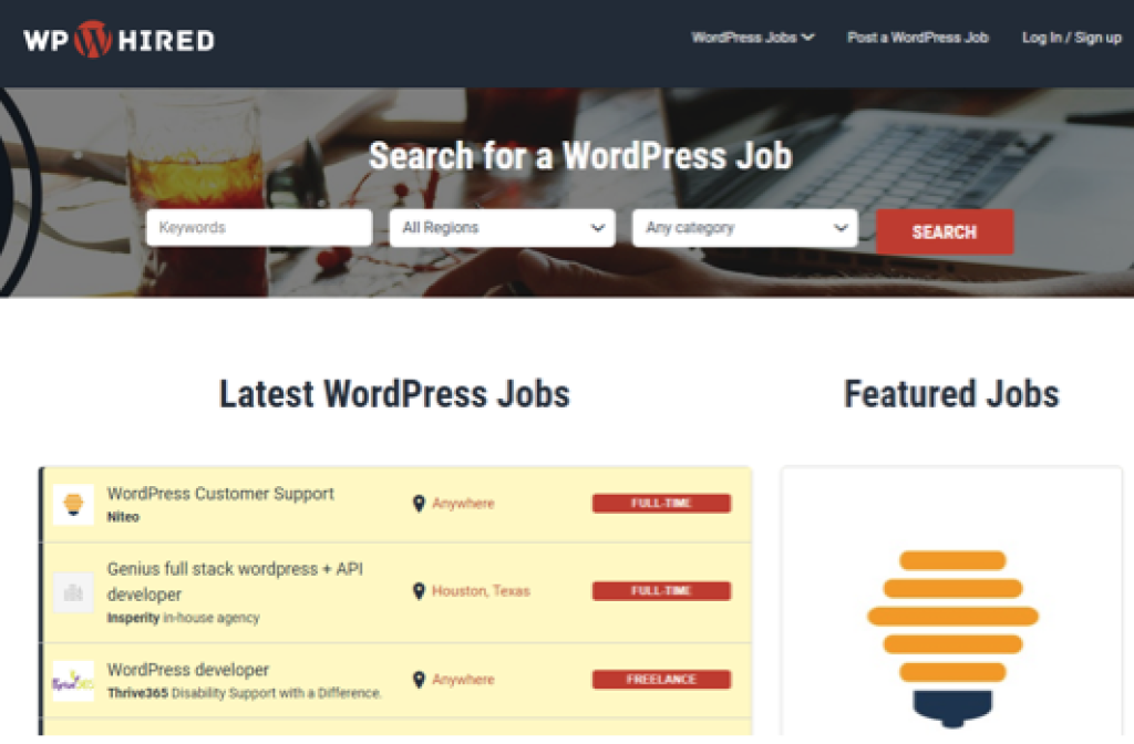 WPHired is not remote-only, nor is it a design-only job board. It is, however, one of the largest search engines for WordPress-focused jobs on the planet. From design and development to marketing and SEO, if there is a WordPress-related opening anywhere on the planet, WPHired probably has it.
