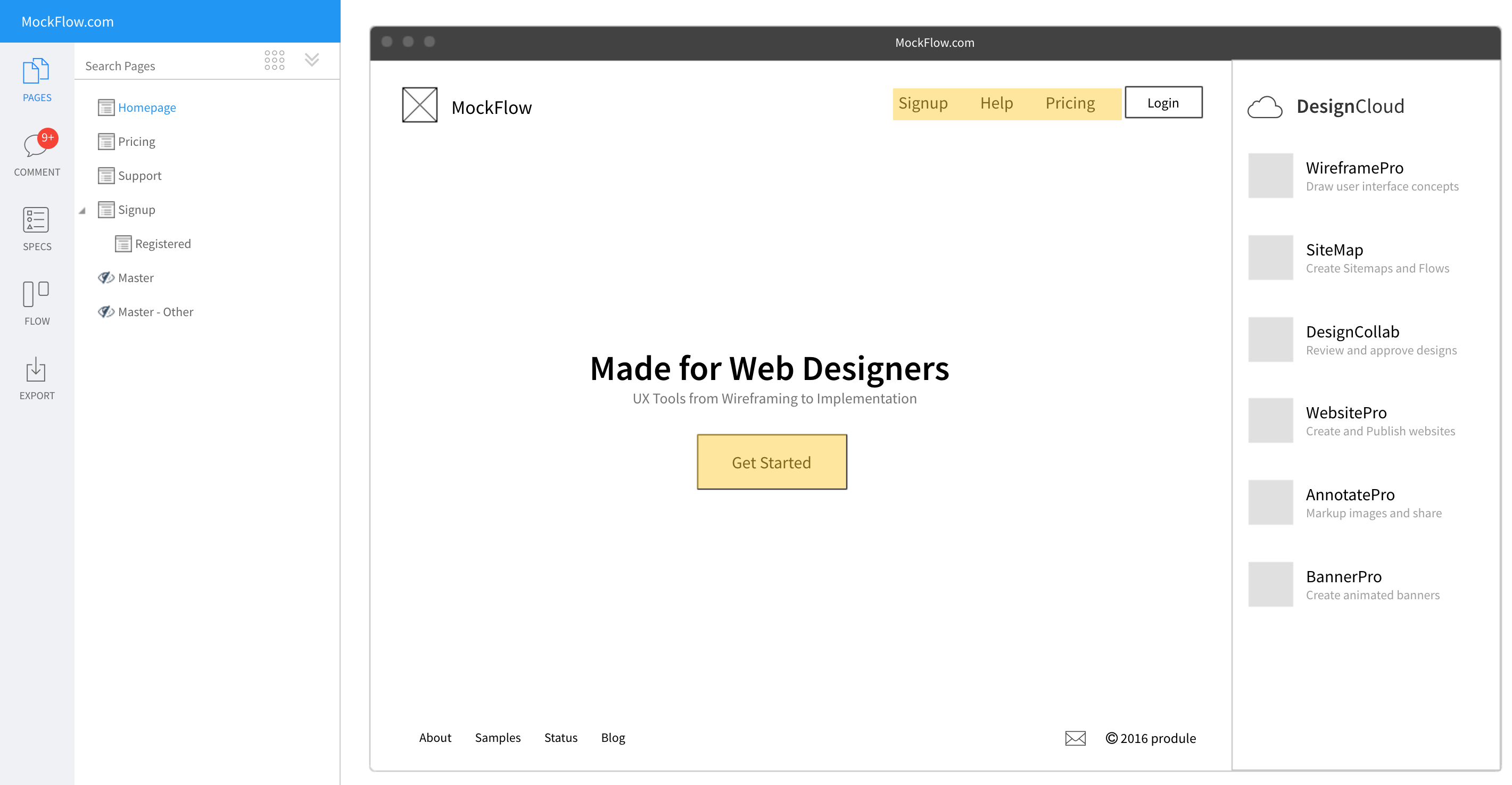 This is a very popular solution, with an easy-to-use designer and a unique appearance which ensures that clients won’t confuse wireframes for final designs. Balsamiq Cloud is great for teams in particular, due to the way you can review, comment, and iterate through designs from one page.