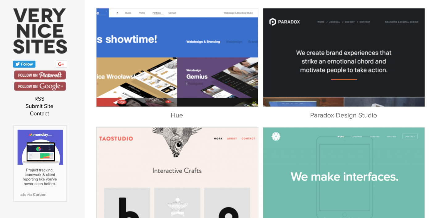 Just like the name says, you can find some very nice sites here. There are all sorts of fun and beautiful designs that will make your next design really interesting and unique. You can use their filter which can take you to some amazing designs.
