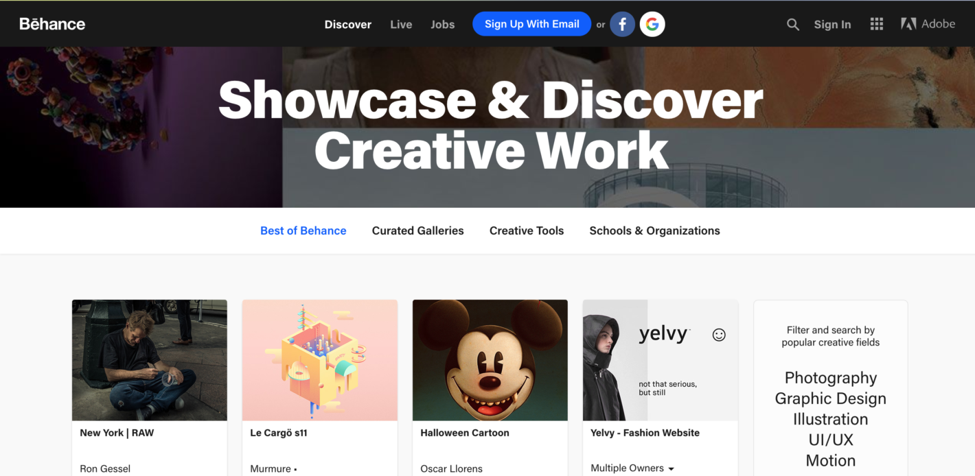 In case you need inspiration quickly, this is one of the best places to find it. There are various designs available and you can find basically anything you need, just like the name of the site says. There are advanced search options and designs for every industry.