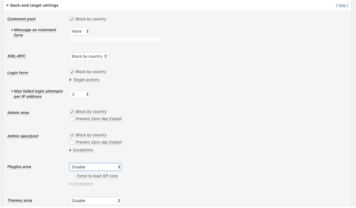 With this plugin, you can block different parts of your WordPress site, its files, and the database from specific countries. Or you can whitelist it for your select few if you prefer.