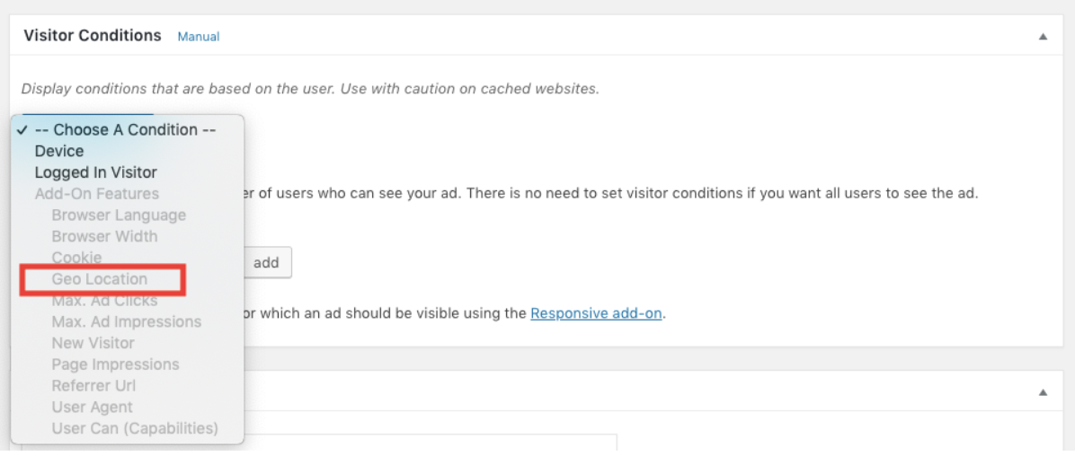 As such, you’ll want to use an advertising plugin that supports geotargeting. This won’t be a feature that you can get for free from a plugin, but there are premium upgrades to a trusted plugin like Advanced Ads that will enable you to geotarget your ads.