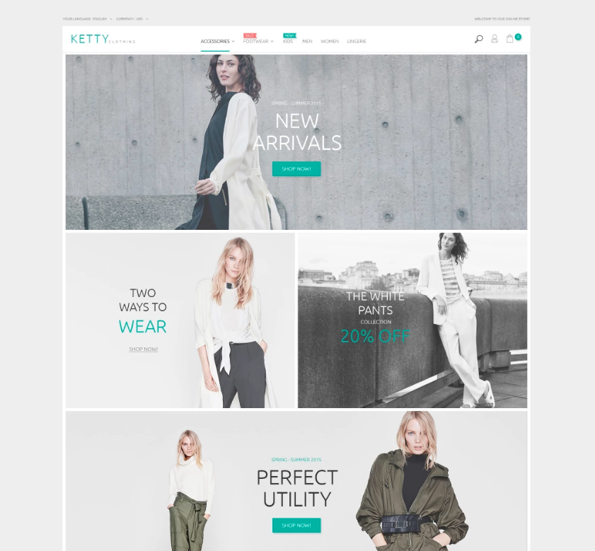 This stylish, modern, and clean theme is perfect for a fashion company. The theme contains a grid layout, or card-style, presentation. The design structure is minimal and the theme is responsive. There is a background option for videos. The features include multiple layout choices, mega menu, blog, social media buttons and a lot more. The theme is compatible on Prestashop as well as Magento platform.