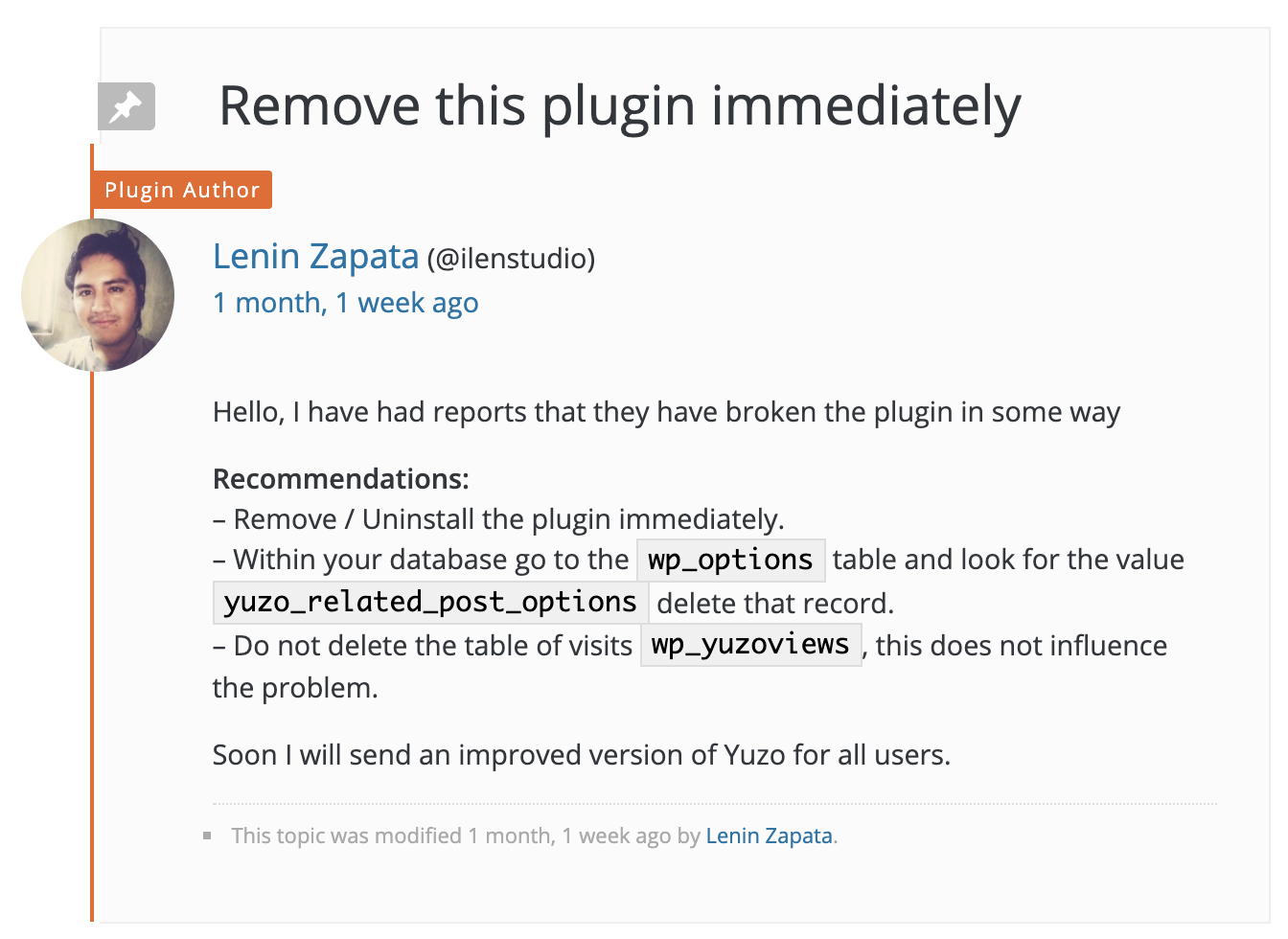 When the WordPress plugin team identifies a security issue that can not be addressed in a timely manner, the plugin is “closed” and downloads are restricted. However, there are bad actors who are closely monitoring these opportunities.