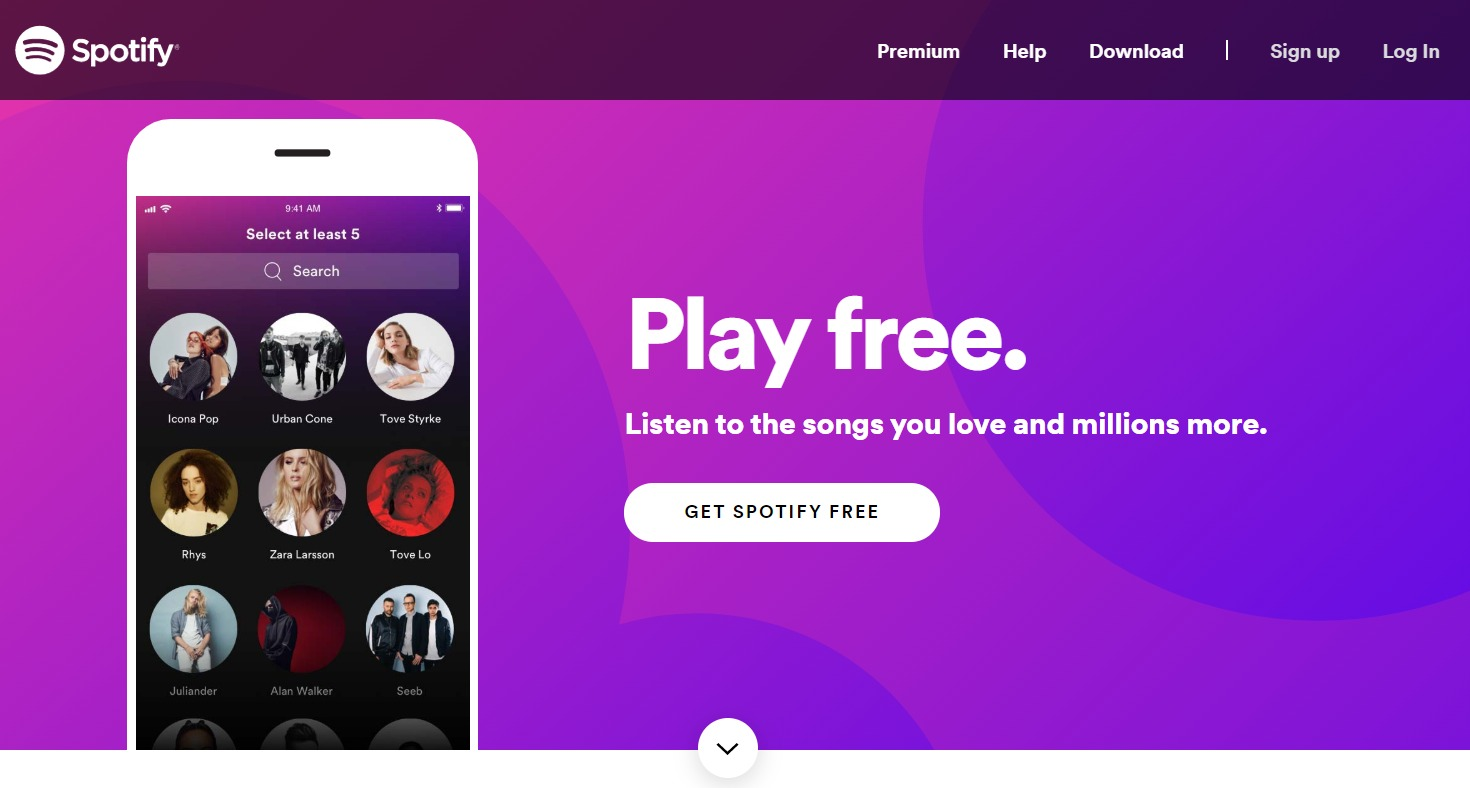 Spotify’s CTA is prominent, clear, and tells customers exactly what they will get once they click the button (the free version of Spotify).